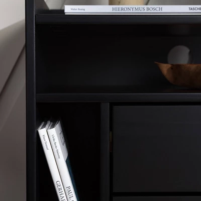 - 1 horizontal cubby and 1 vertical shelf for open storage